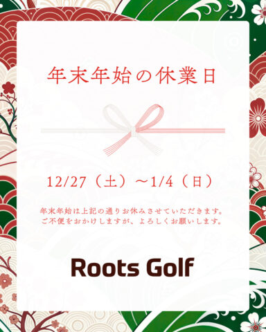 ルーツゴルフでは、年末年始休業の期間を以下の通りとさせていただきます。